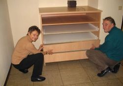 Helene Rehling und Fritz Thier beim Einrichten des Vereinsarchivs |